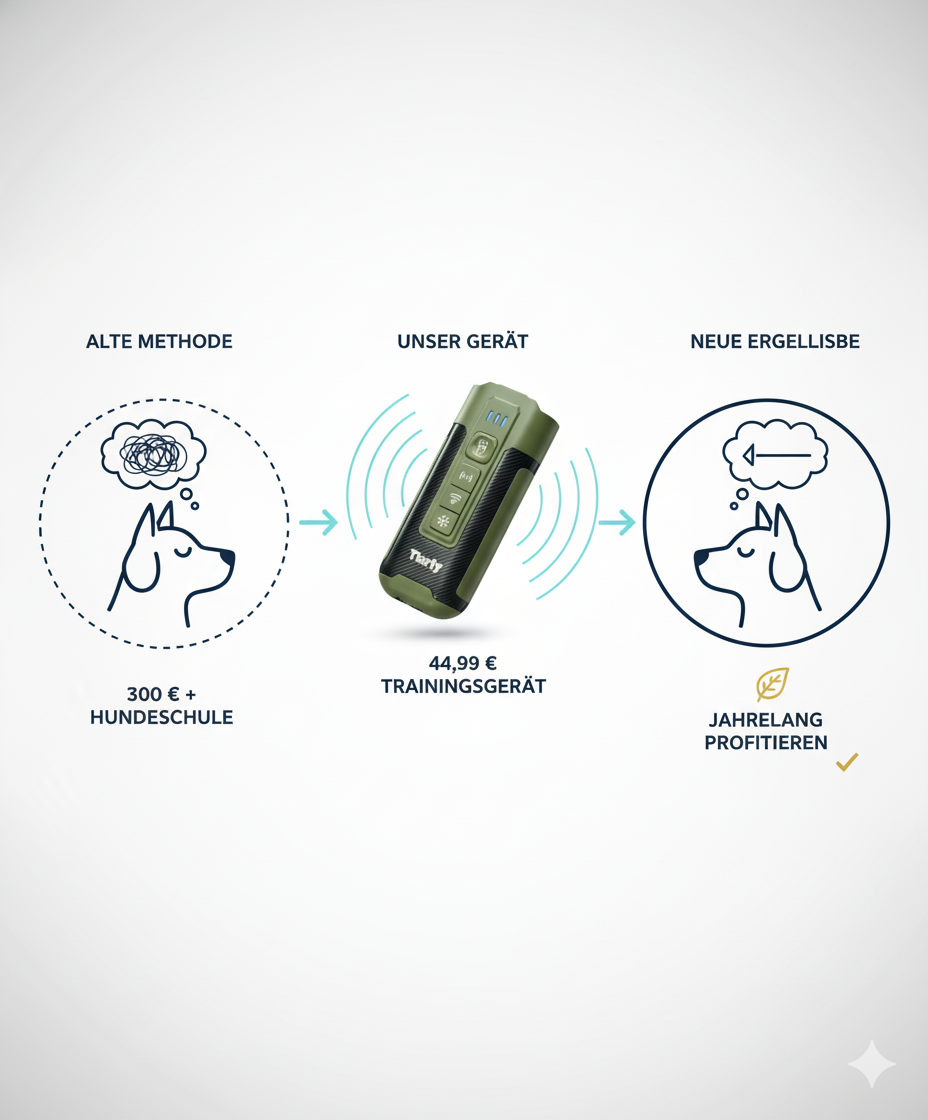 Tausende Hundebesitzer wechseln vom Schreien zu Ultraschall: sanft, schnell, wirkungsvoll.